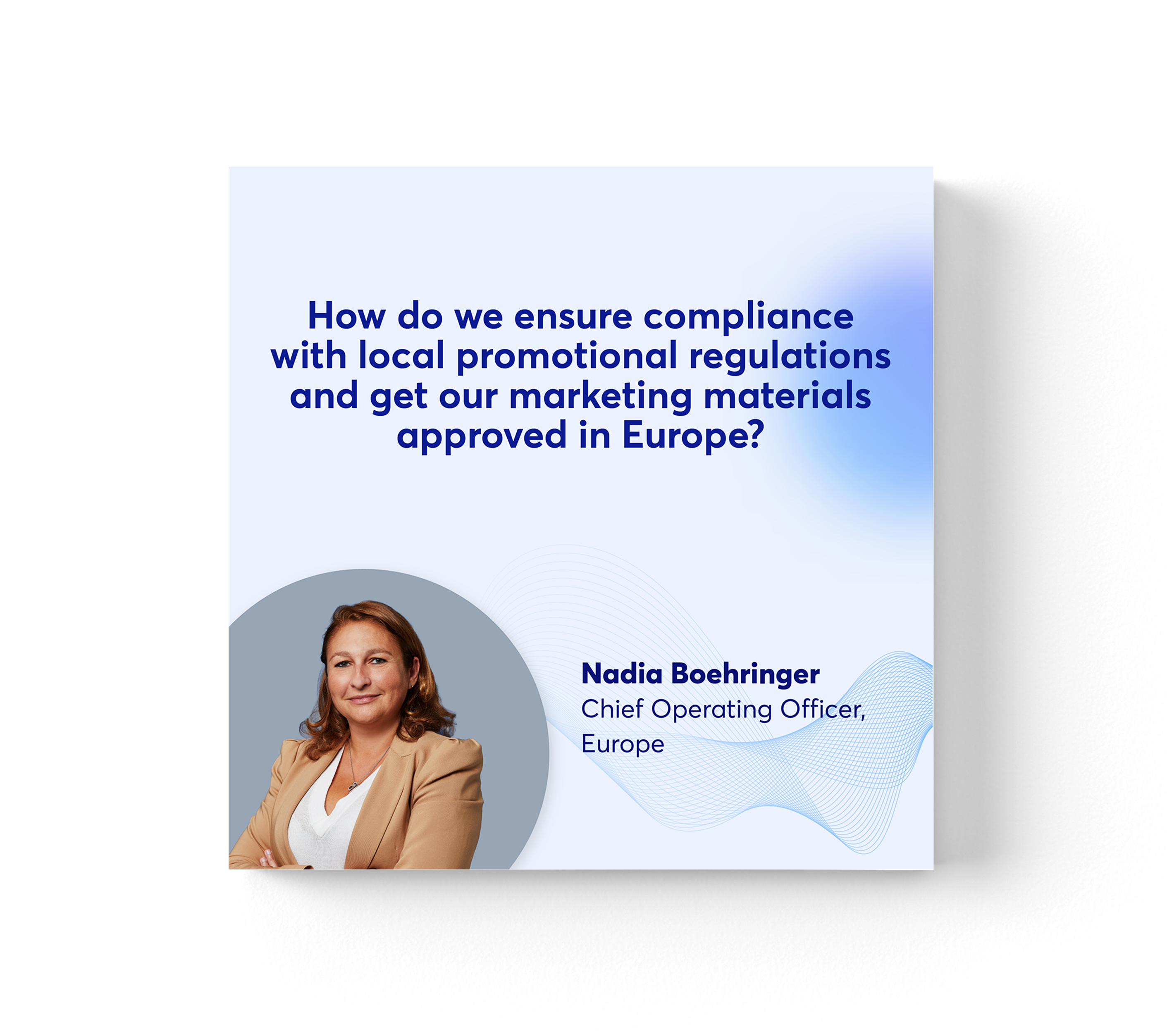 How do we ensure compliance with local promotional regulations and get our marketing materials approved in Europe?